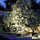Downlighting imitates natural moonlight and is very dramatic when halogen spots are used. Contrasting highlights and shadows on large trees, statues and stone walls creates handsome focal points in your landscaping.